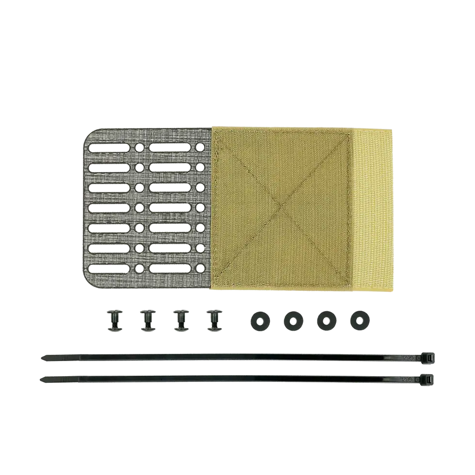 The Wingthing™ is a universal mounting platform version of our popular Wingman™ pouch. Originally designed to provide a knife mounting solution to your carrier, the Wingthing™ is also MOLLE compatible and allows for the mounting of MOLLE pouches of your choosing. The rigid design provides a perfect platform to support most items, especially heavier items such as radios. The hole/slot spacing fits a majority of kydex knife sheaths. Use it on the side of your plate carrier or as a custom Dangler® setup. Feel free to use your imagination and adapt this platform to whatever you want.